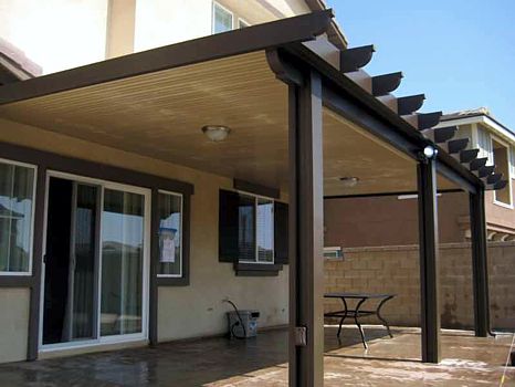 - We work with high quality materials and specialize in: Alumawood patio covers, traditional Wood patio covers, Vinyl patio covers, Aluminum patio covers.